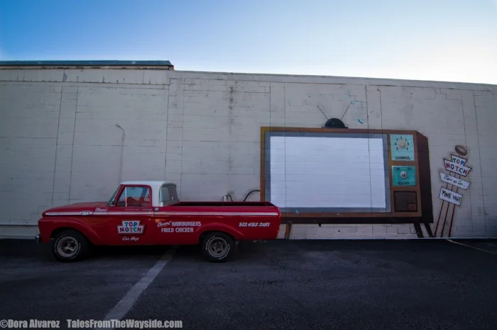 Being a Texas based film, actually filmed in Texas, I decided to make a stop by one of the icons of the movie. Now I didn't delve deep into the movie searching neighborhoods, shops, and liquor stores. If you live in the Austin area, you can really take the day hunting down all the areas. Here is a great resource to the filming locations. I went with the one thing left unchanged from that 1993 film. Top Notch Burgers. I tell you it was a time warp pulling into that parking lot. All the ordering boxes, and even when you walk into the place, you can tell they haven't altered anything from the 70's. Wood paneling, orange and brown decor and they even kept the same style of soda cups from the movie!
